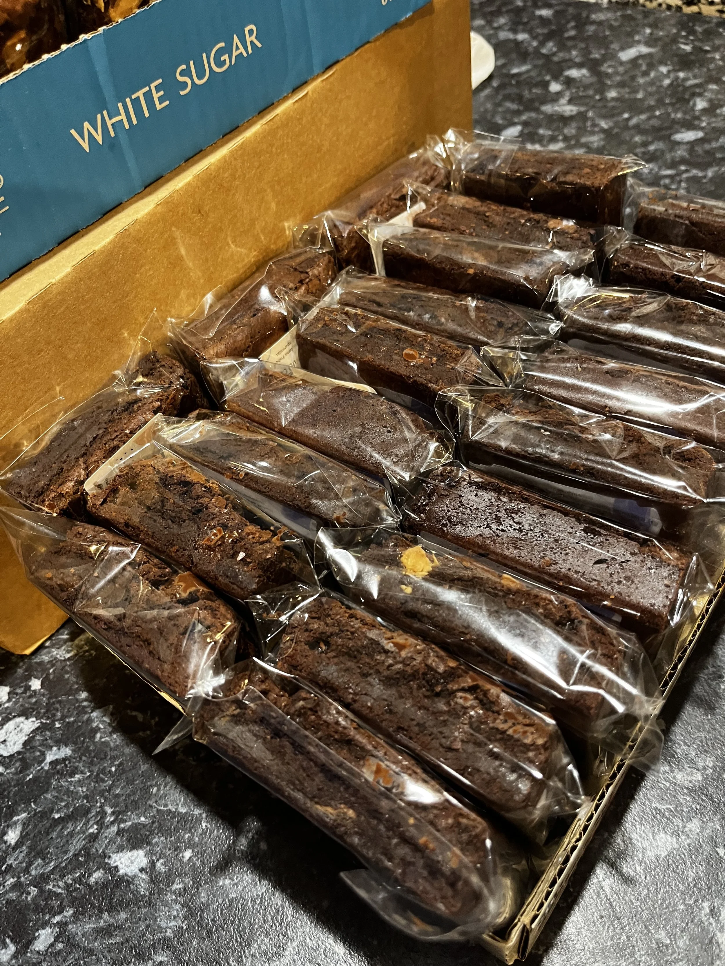 Indulge in our Brownie Favors: Delicious brownies pieces wrapped for a perfect party favor.